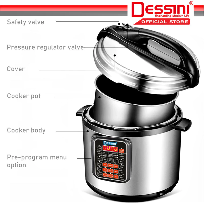DESSINI ITALY 10IN1 Electric Digital Pressure Cooker Non-stick Stainless Steel Inner Pot Rice Cooker Steamer (6L) Buy one, get one free!